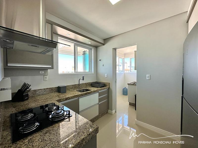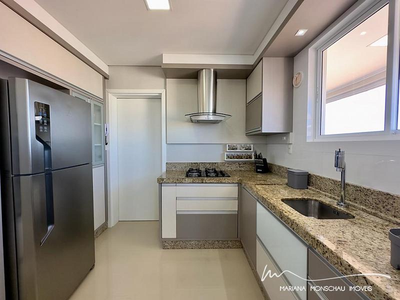 Todos os ambientes contam com móveis sob medida de alta qualidade, e tanto a sacada quanto a cozinha e a área de serviço proporcionam uma linda vista do mar.